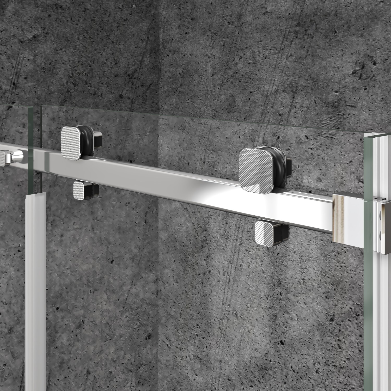 Bathtub door Alta in a corner closing on wall, wall on the left, door on the left, 60" x 32", towel bar and hook included, sliding door, chrome frame and clear glass, Zitta collection