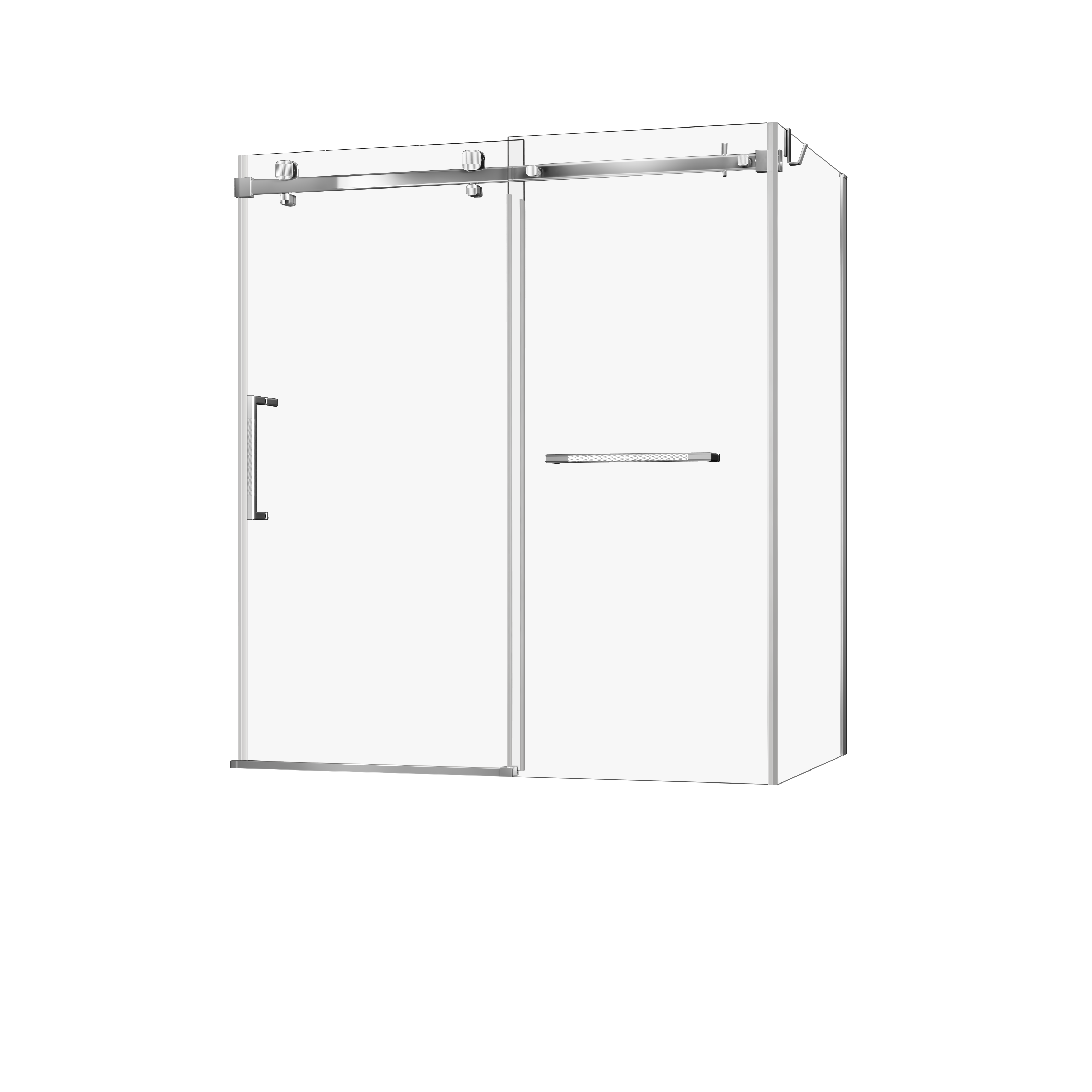 Bathtub Door 60" x 32", in a corner closing on wall, wall on the left, door on the left, in chrome